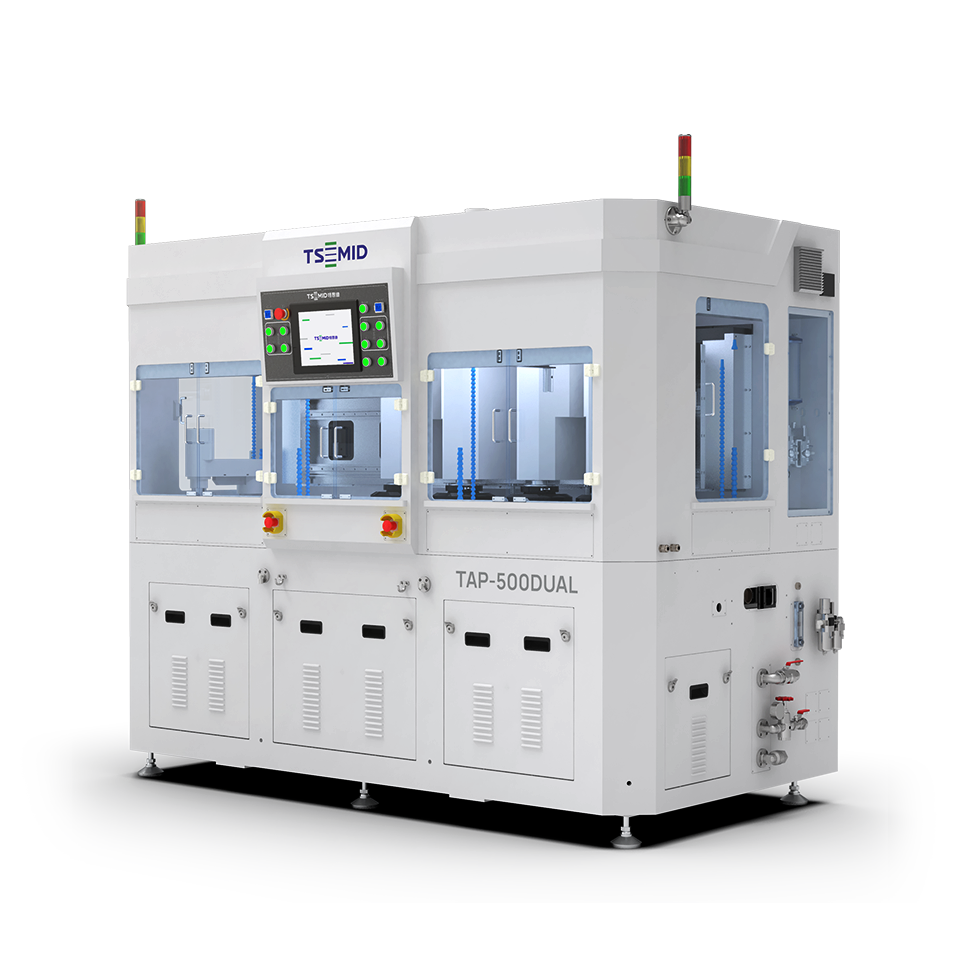 该系列抛光机是双抛光盘的高精密单面抛光设备,可实现四轴同时加工,设备可依据不同晶圆配置相应抛光头,真空吸附固定晶圆,气囊加压,抛光压头自转并兼具摆动,适用于各种半导体材料的抛光。